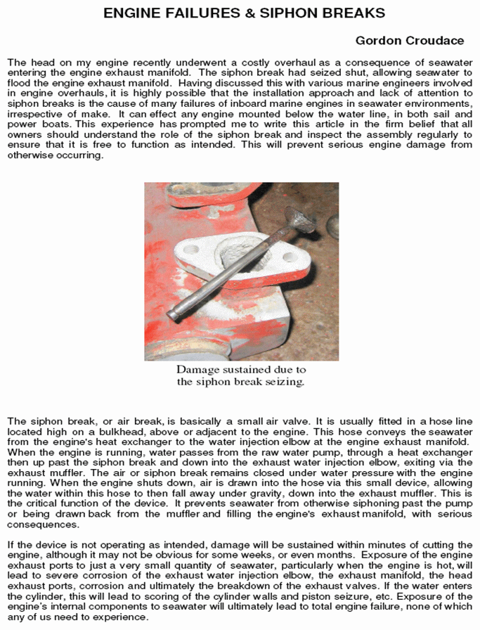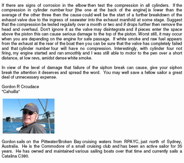 The following pages gives a detailed analysis from an owner of what can happen when hot salt water gets to an exhaust valve and what the solutions are – maintenance and design wise to prevent this from ever happening.