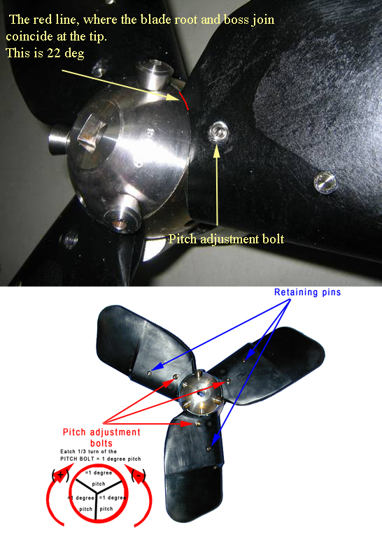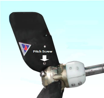 The screws are self locking as Zytel is an Aramid and cut the last 5 threads into the blade. After pitch alteration place Loctite around the head of each pitch screw as extra insurance. NB: Ceelon Thread Seal around the screw can be used to ensure the screw is sufficiently stiff if it has been caught - perhaps on a rope and moved slightly and become freer.