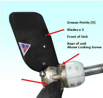 Lubricate each blade in turn plus the nose and aft section of the unit as described in the section on lubrication detailed above. The unit should now be ready for another season.